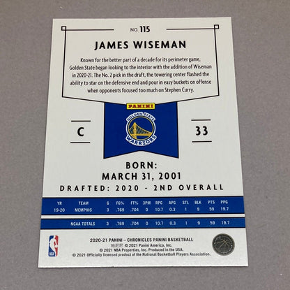 2020-21 Panini Chronicles James Wiseman Rookie Card