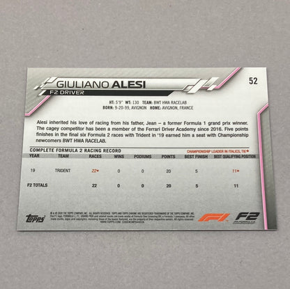 2020 Topps Chrome Giuliano Alesi #52 Base F1 Card