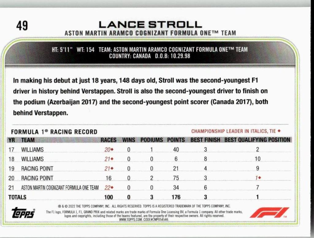 2022 Topps Formula 1 #49 Lance Stroll