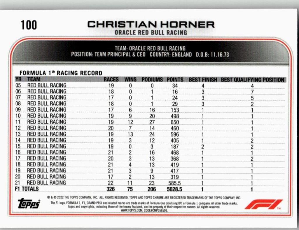 2022 Topps Chrome Formula 1 #100 Christian Horner