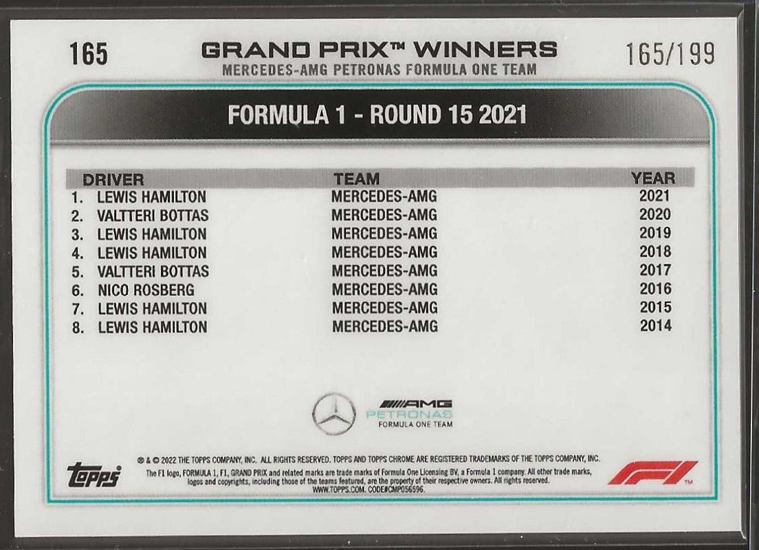 2022 Topps Chrome Formula 1 #165 Lewis Hamilton Purple Checker Flag #/199