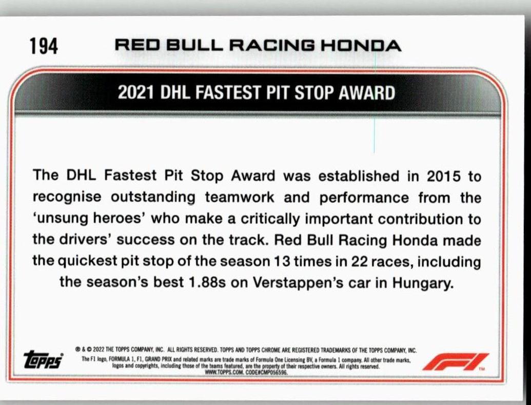 2022 Topps Chrome Formula 1 #194 2021 DHL Fastest Pit Stop Award
