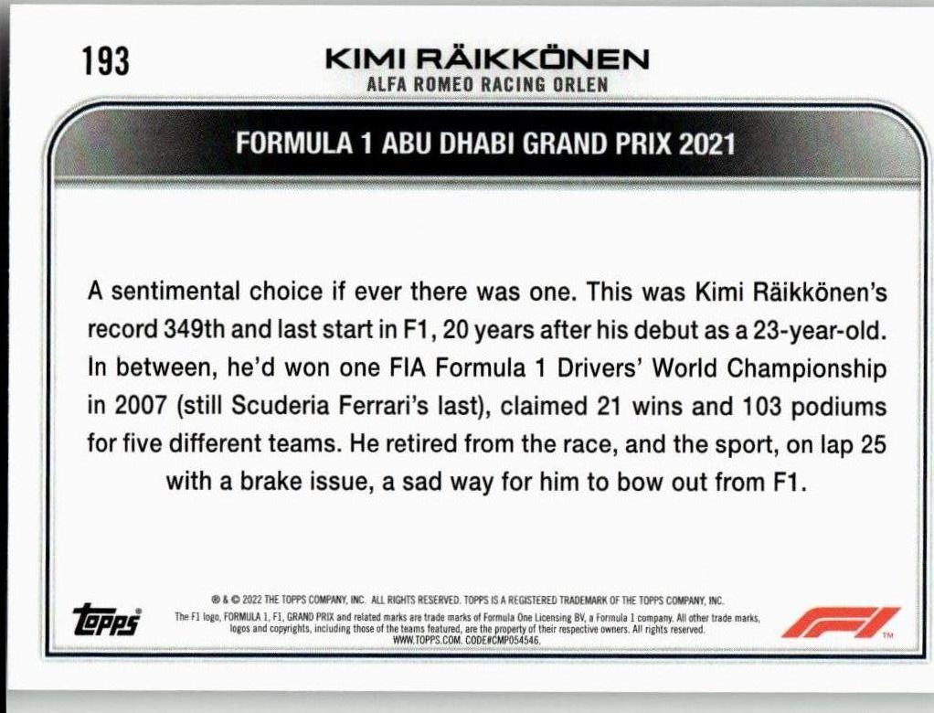 2022 Topps Formula 1 #193 Kimi Räikkönen