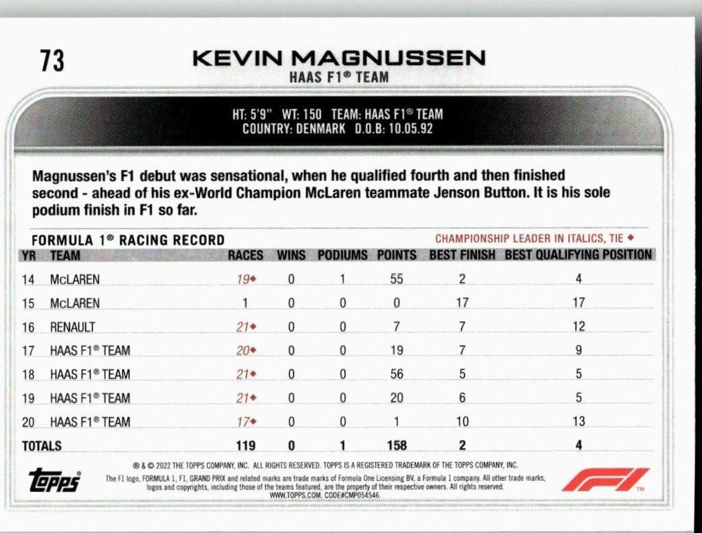 2022 Topps Formula 1 #73 Kevin Magnussen