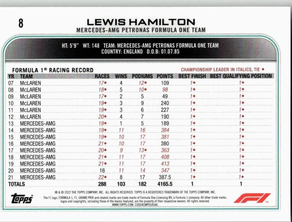 2022 Topps Formula 1 #8 Lewis Hamilton