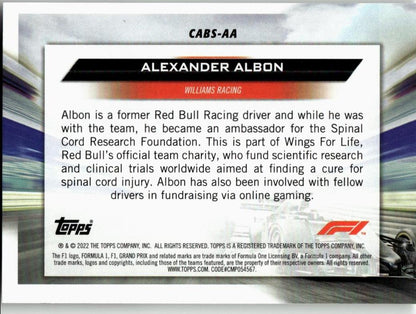 2022 Topps Formula 1 #CABS-AA Alexander Albon Clean Air, Blue Skies