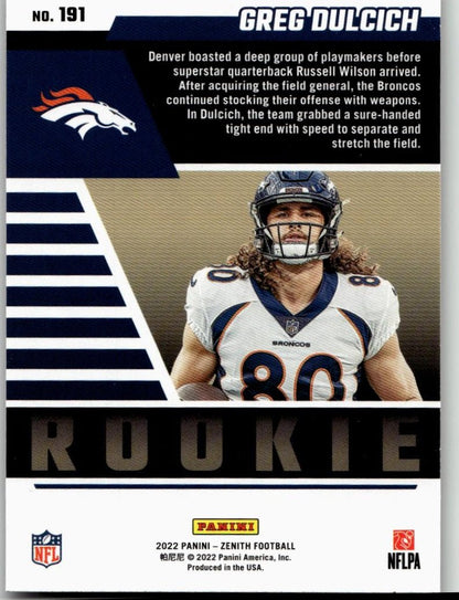 2022 Zenith #191 Greg Dulcich Red Zone