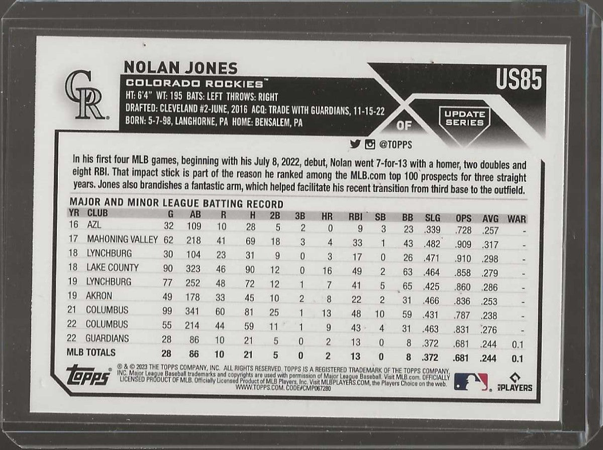 2023 Topps Update #US85 Nolan Jones Gold #/2023