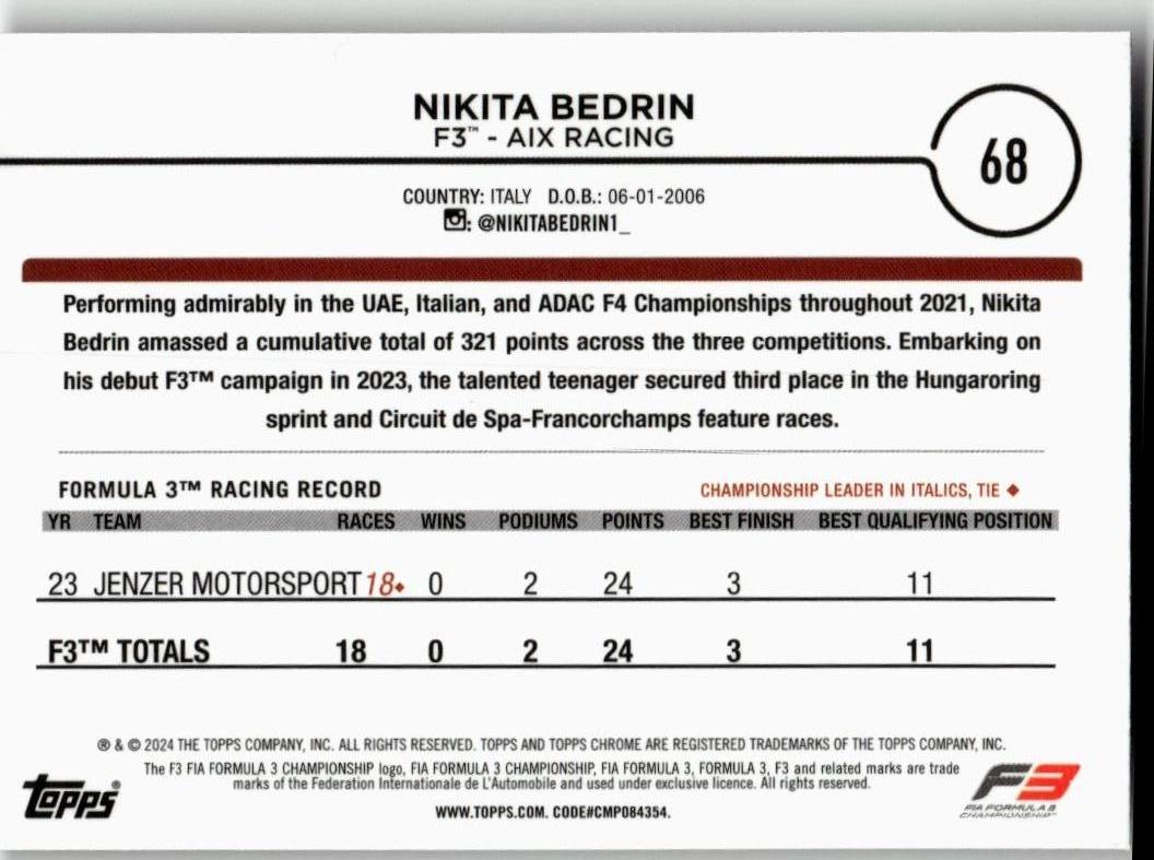2024 Topps Chrome Formula 1 #68 Nikita Bedrin